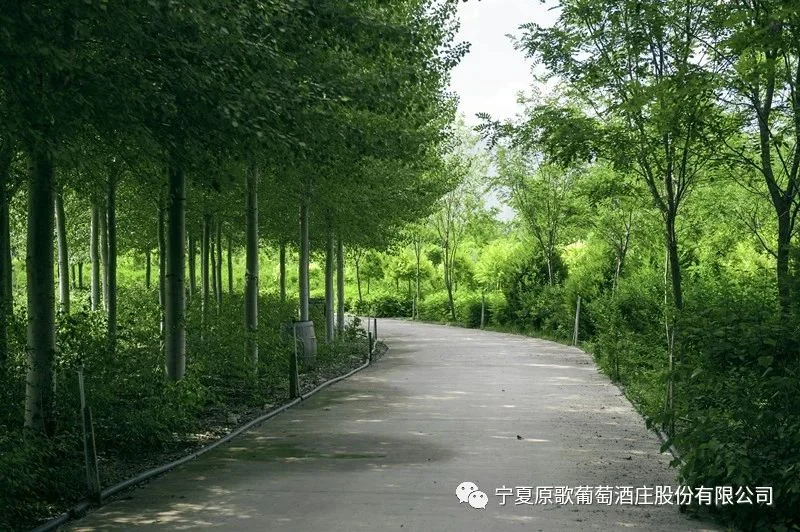 原歌五月。这是一个万物争春的时节,葡萄园一片绿意盎然,葡萄叶不断地汲取阳光积攒着能量,新枝茁壮生长,酒农们开始葡萄枝的上架,以便通风透气、光照均匀充足。庄园里其他植物也是生机勃勃,柳绿花红,漂亮的芍药花盛开在草坪上,在青黛色的酒窖映衬下,竟有一丝婉约的美,恍如江南春色。