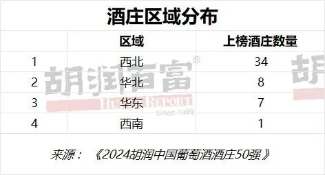 ❖50强酒庄中,49家位于北方地区,只云南的敖云酒庄位于南方地区