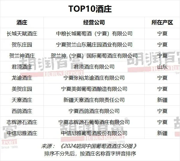 (2024年1月19日,宁夏)提供有质量的榜单与调研的胡润研究院今“日”发布《2024胡润中国葡萄酒酒庄50强》(2024 Hurun China Wineries Top 50),列出了中国葡萄酒行业实力强的50个酒庄。这是胡润研究院初次发布该榜单。