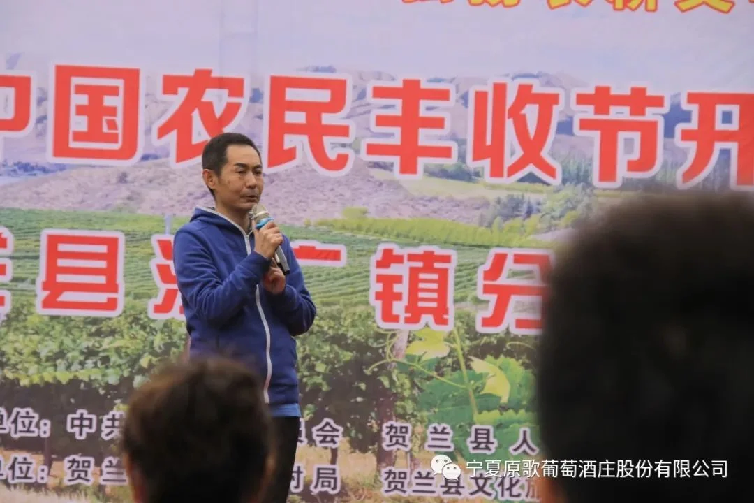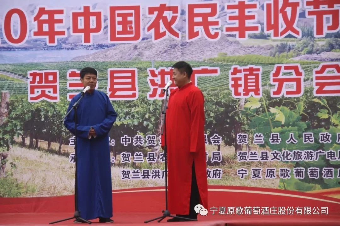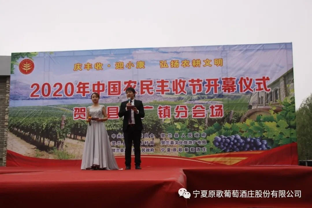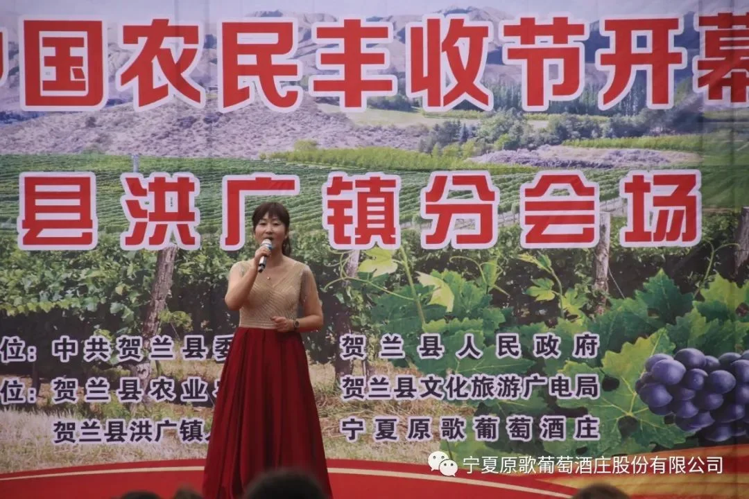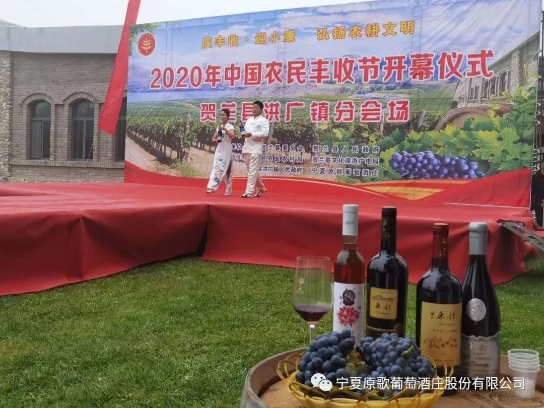 2020年9月23日,宁夏贺兰县2020年“农民丰收节”洪广镇分会场庆祝活动在原歌酒庄隆重举行。活动现场聚集了贺兰县及洪广镇政府各级领导,贺兰县各酒庄庄主,周边农民朋友,宁夏本地明星大咖演出人员以及20多家国家及地方主流新闻媒体等社会各界人士,一起相聚原歌共同迎接和庆祝“中国农民丰收节”!